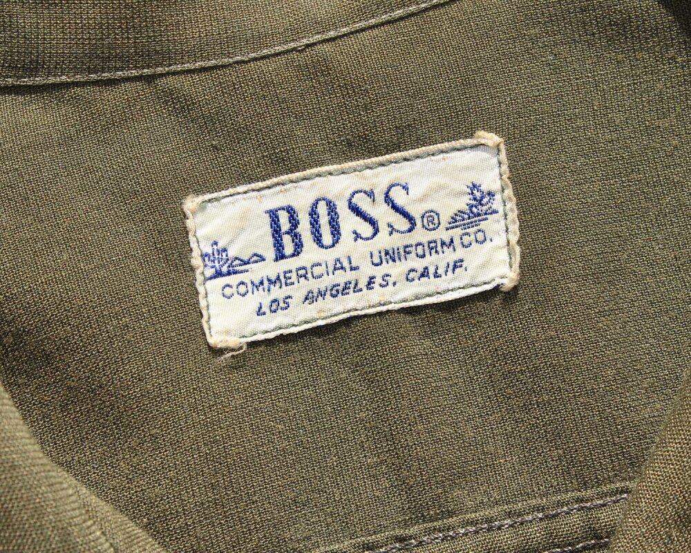 Around the 1950s, this is an open collar rayon shirt. The work shirt specification uses the rare rayon VIERA fabric, and the olive color has a mannish look. Rayon material, which has been valuable in recent years, is characterized by a soft and thick drape. A silhouette that looks neat while being moderately spacious in L size. It has a slightly uneven tan, but it has a vintage feel. It is in good condition subjectively as used clothing. Since it is an old product, it rarely deteriorates over time. Please check the photo and purchase after acknowledging the characteristics of vintage.