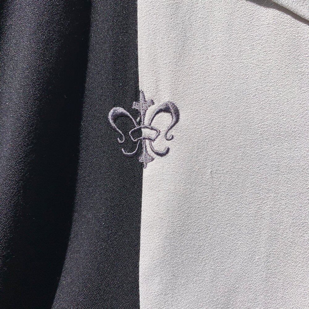The front part of the black body is switched with white co-fabric, the design is embroidered in places, and while following the vintage style of the 1950s, it is refined with a somewhat jazzy atmosphere like Da Vinci. It features a new design.