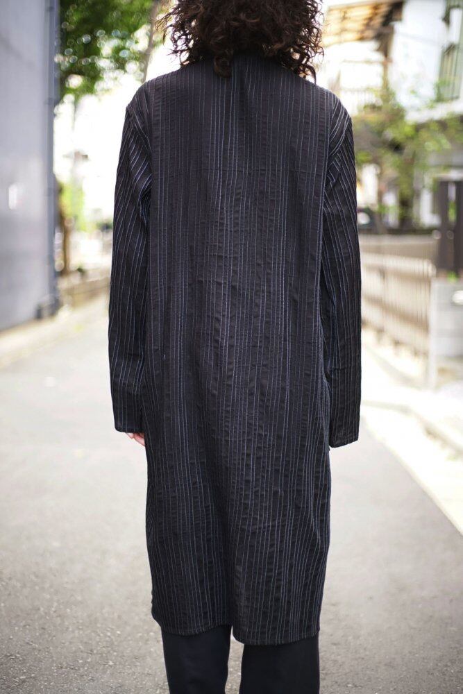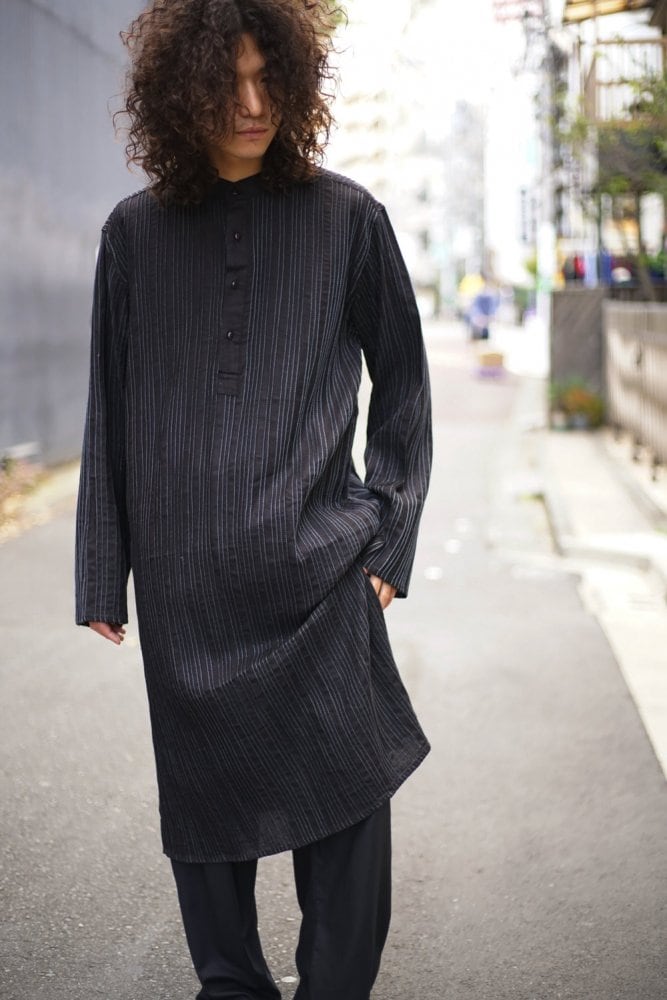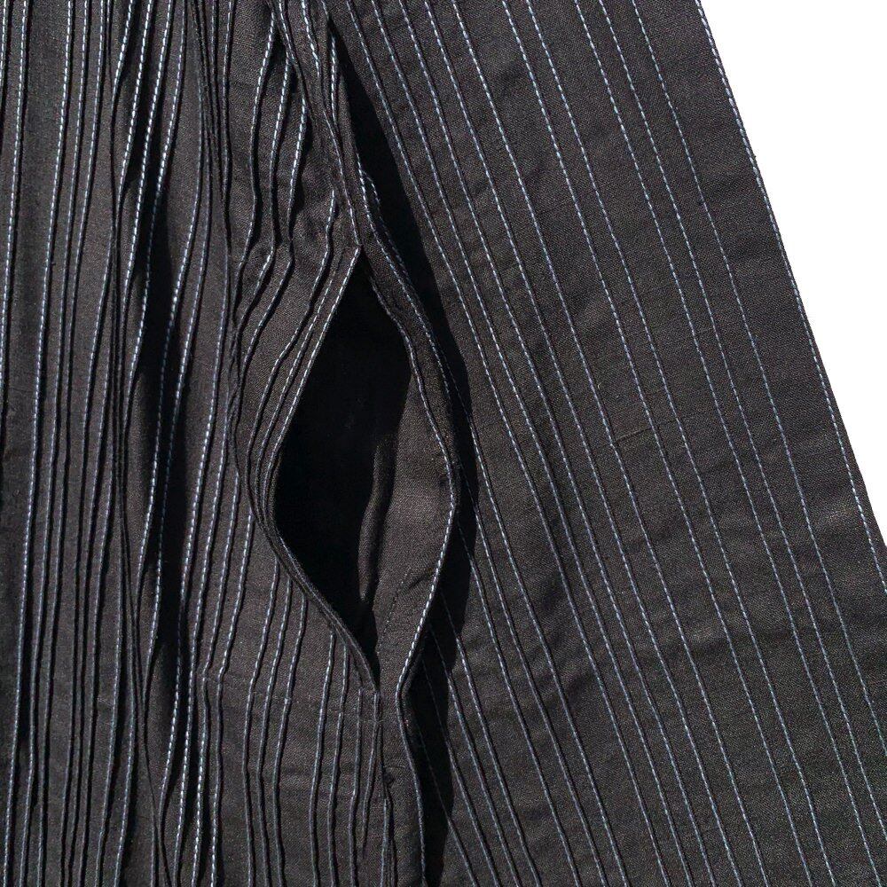 A refreshing silk fabric is used, and the point is the blue stitching of the stripes that run throughout.