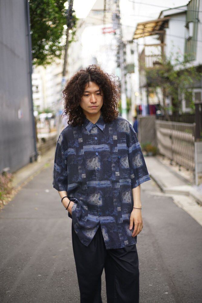 A rayon shirt from the 1980s featuring artistic prints made by the well-established brand Alan Stuart.