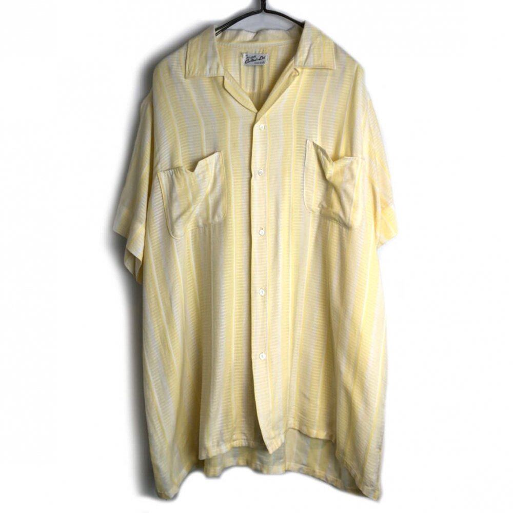 60s short-sleeved rayon shirt Light yellow x white woven stripes are a refreshing shade Rayon fabric that is thin and has a smooth gauze-like feel Relaxing silhouette shirt that can be worn in a relaxed size