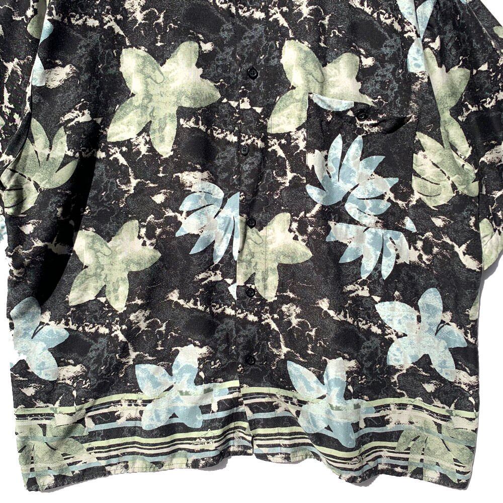 A rayon shirt from the 1990s featuring an artistic floral print.