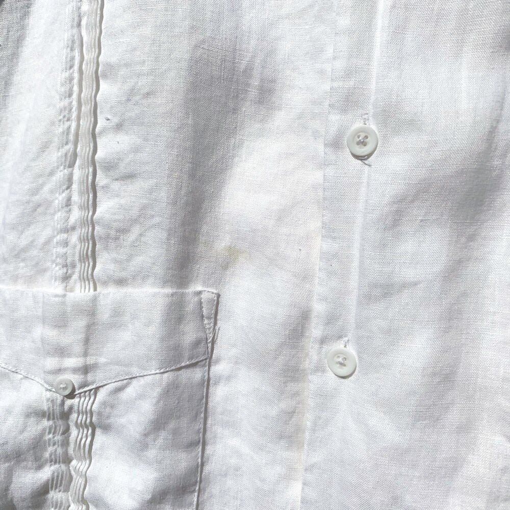 Used as a formal shirt in Cuba, it has a mannish work style with an open collar, a box silhouette, and numerous pockets.