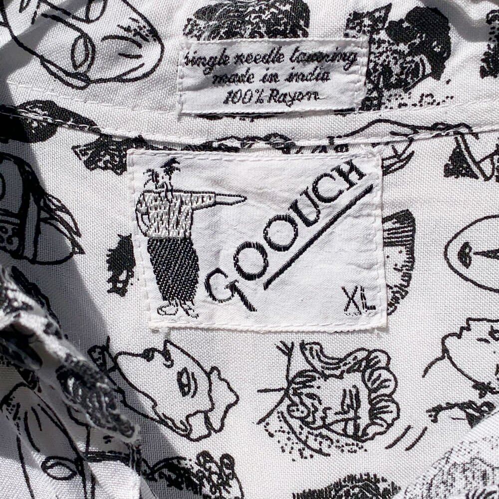 Around the 1990s, this is a GOOUCH rayon shirt.