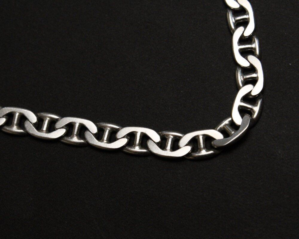 Probably from around the 1980s, a chain necklace made in Italy that had a good craftsman for a long time. Simple and minimalist design with a classical buckle design that gives you a solid weight. Engraved with 925 silver. Its about the size of a medium-thick one that you cant easily find when you look for it, and it has a strong presence even if its layered. Since it is old, it may be scratched. Please check the photo and understand the characteristics of vintage before purchasing.
