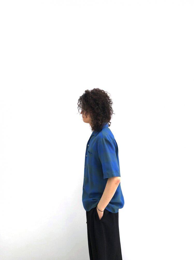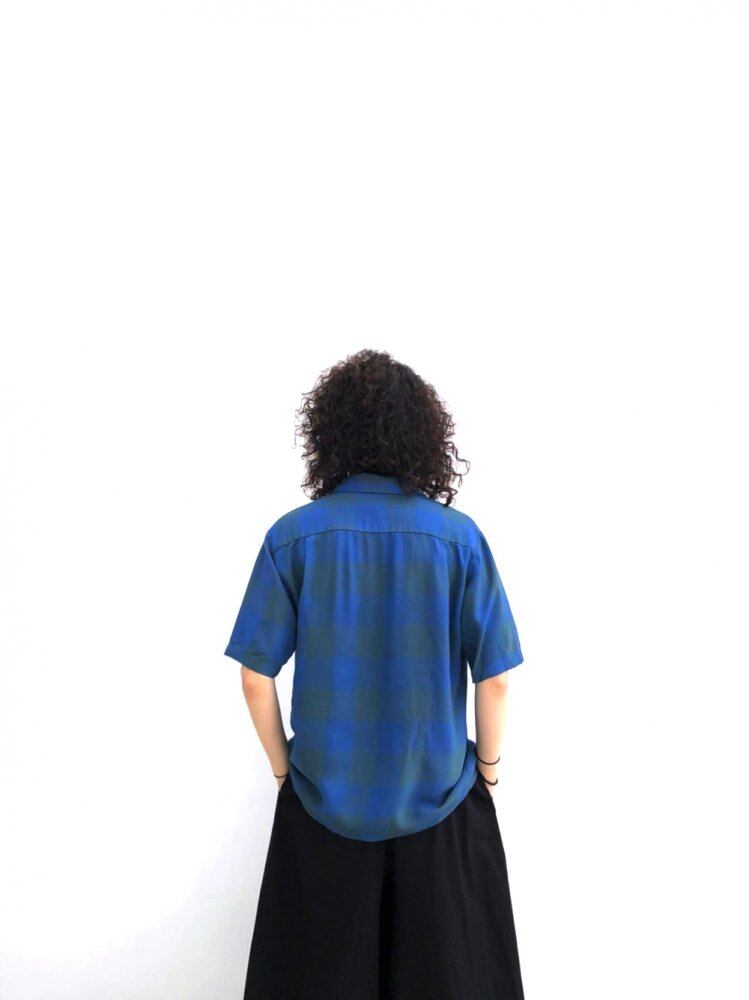 60s short sleeve rayon shirt Blue x green shadow check is a good shade