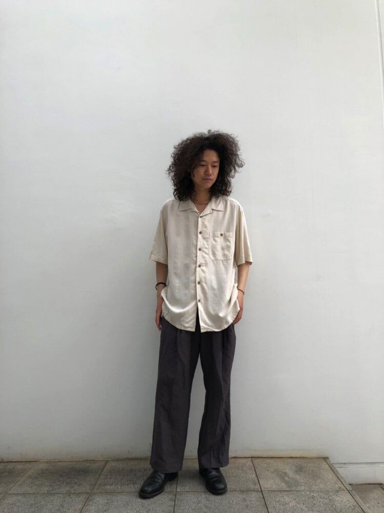 90s short-sleeved silk shirt Good and mature off-beige color Moderately loose size A feeling of good atmosphere A simple summer piece that softly falls on a woven fabric with a textured texture that is cool and easy to mix and match