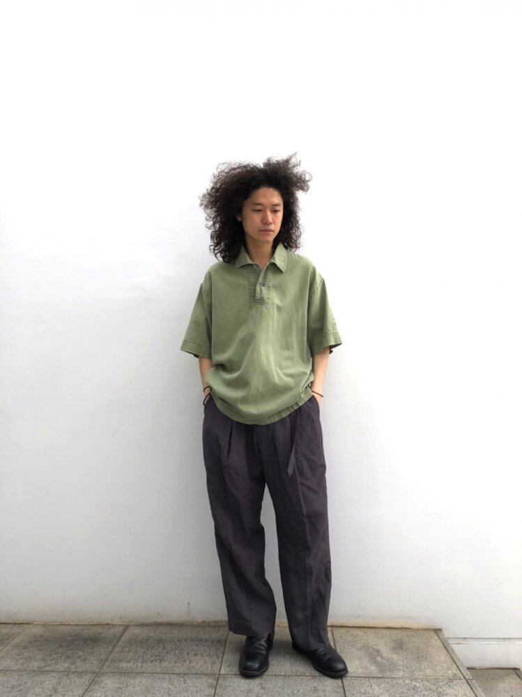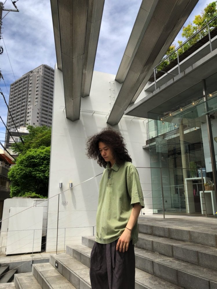 80s Lees pullover shirt The green color that faded nicely and the linen x cotton Kasuri weave have a very nice atmosphere.