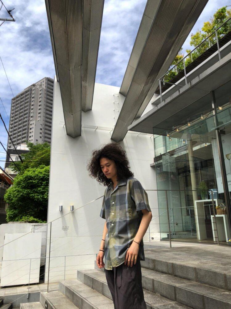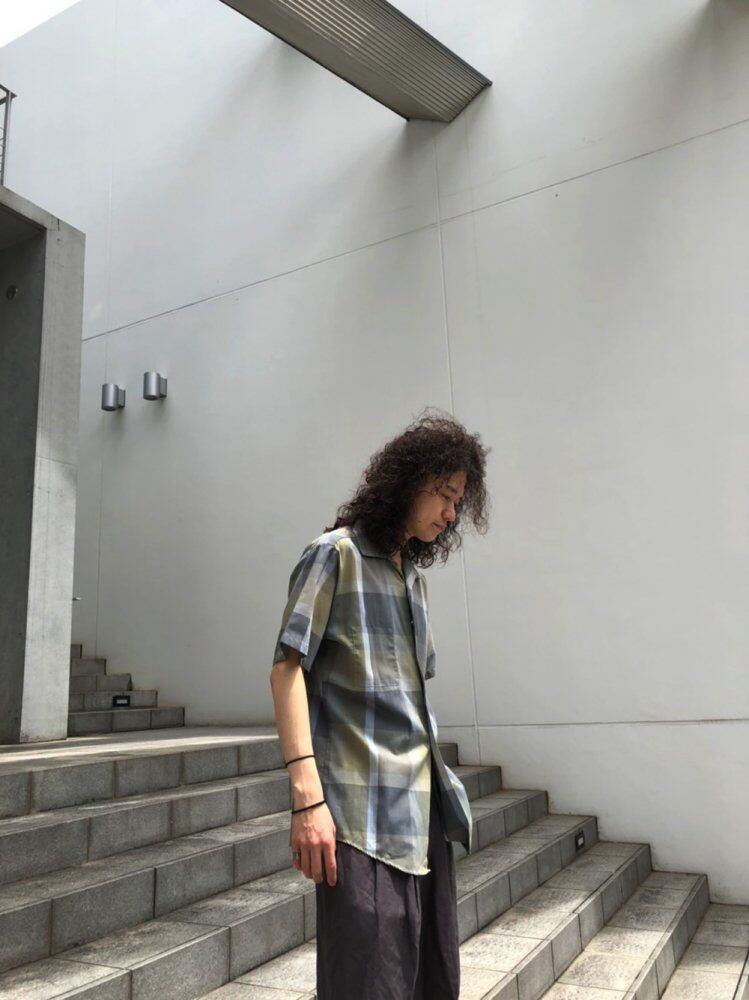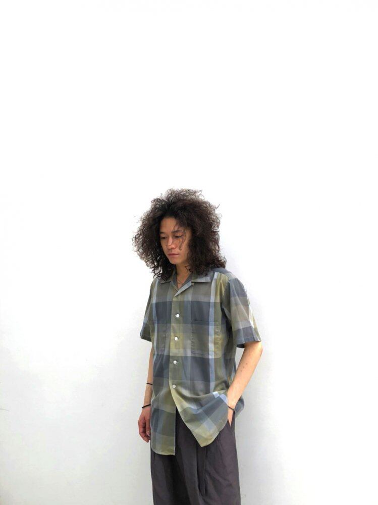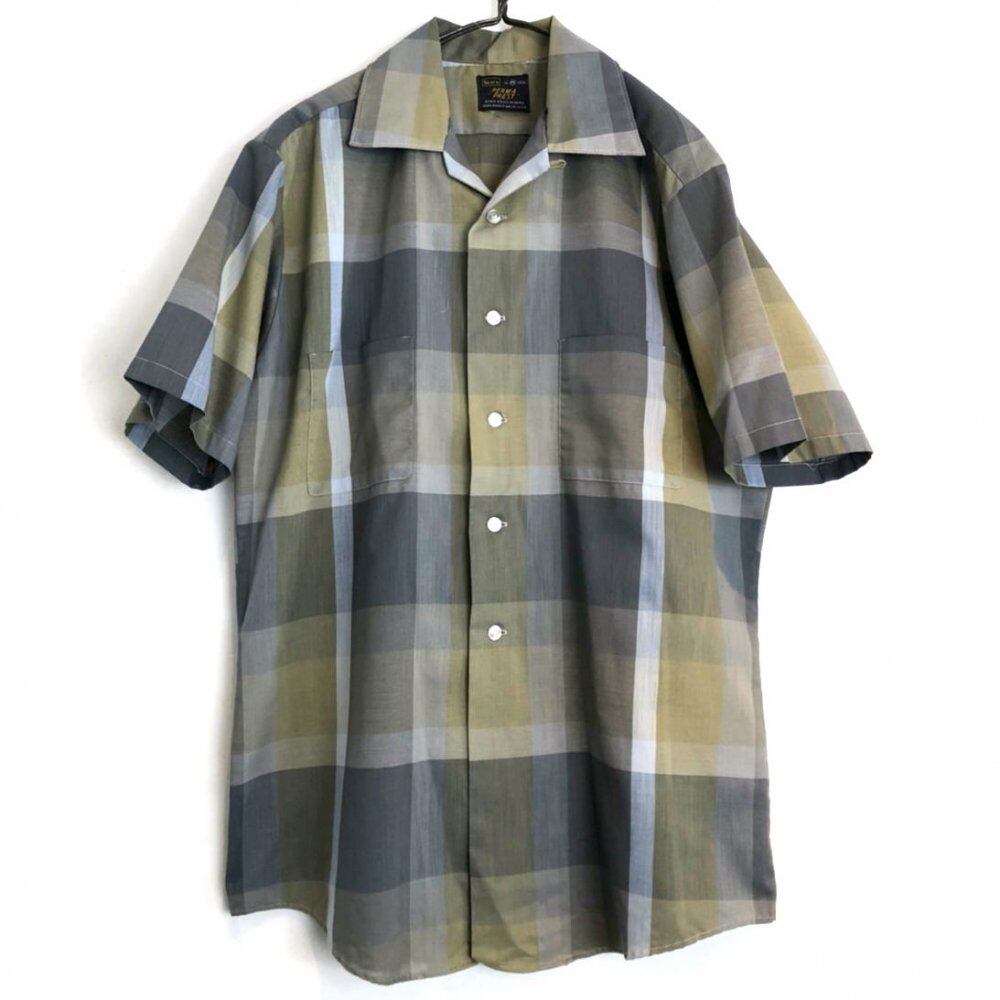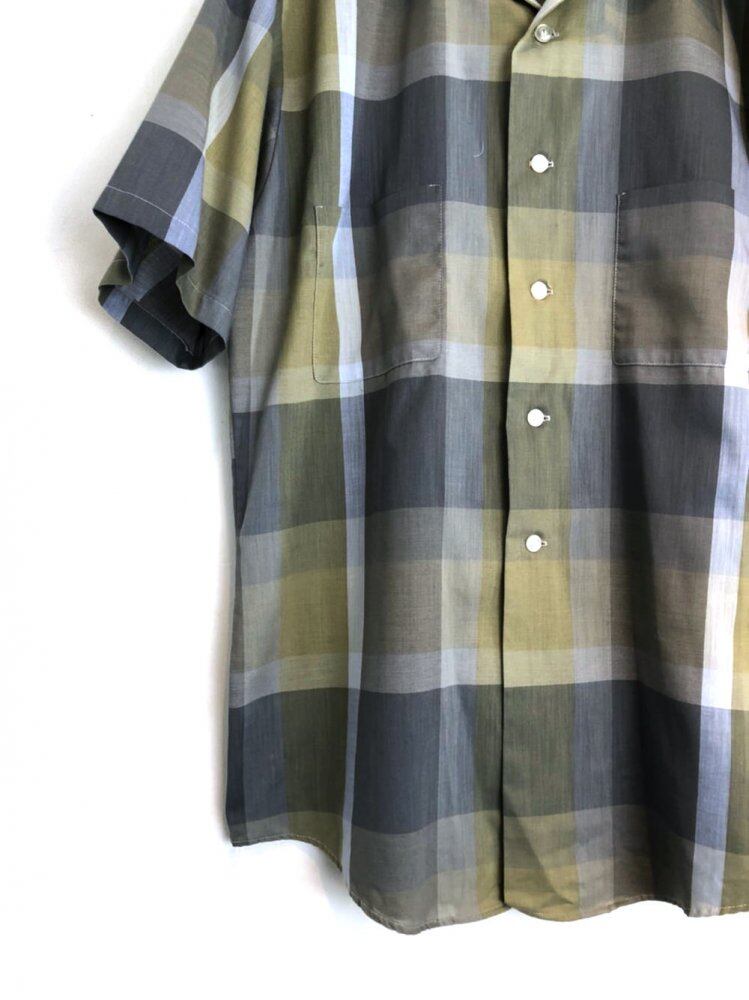 Short-sleeved shirt from the 1960s Gray x olives with a nice check of the calm atmosphere. Light and smooth fabric of cotton x polyester.