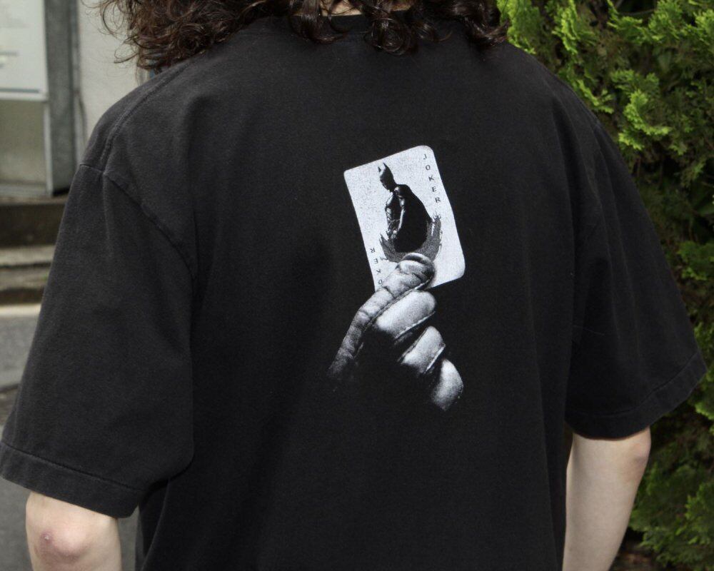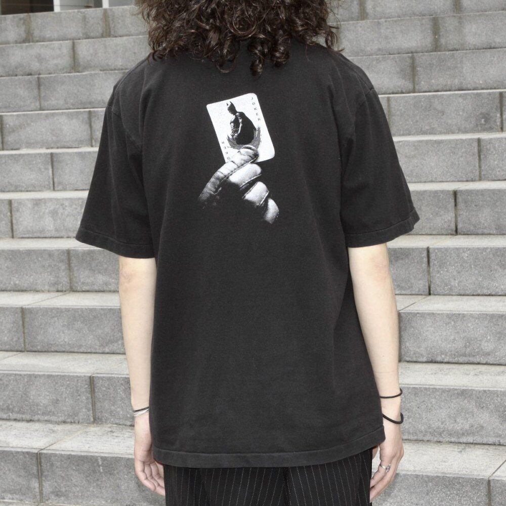 A T-shirt printed with Jack Nicholson, the role of Joker in the 1989 movie Batman. From the age of the FLY BEANS body, which is often seen as a metal band T-shirt, it may have been sold as the next Batman Returns or other promotional items. It is a rare design with an impact that is not seen in the market. L size with a moderately loose silhouette. The lower part of the front body is discolored, and it is in good condition subjectively as used clothing. Since it is an old product, it rarely deteriorates over time. Please check the photo and understand the characteristics of Vintage before purchasing.