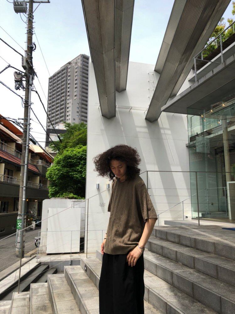 A knit item for spring and summer with a smooth texture of 100% acrylic. It is an item that gives a moderate volume to the one that is easy to match with a mature gray khaki color in a loose silhouette with a moderate amount of room.