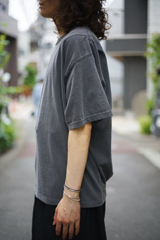 [ALVISTA] 3rd issue Vol 2. Manufacturer CONFORT COLORS, which has been sticking to the texture and color of T-shirts since its establishment in 1975. It is a remake based on a very soft 6.1oz cut-and-sew that has been washed and washed. The XL size is used, the length is changed, and tacks and darts are applied everywhere to adjust the volume, creating an over-silhouette with a calculated airy feel. Pigment dyeing is applied to the product, which has a texture similar to that of used clothing.