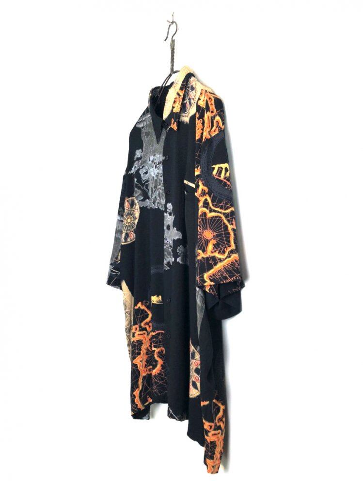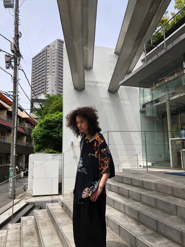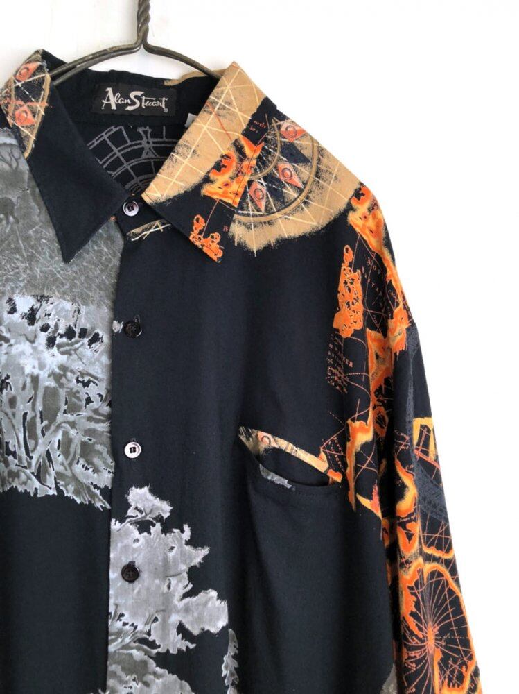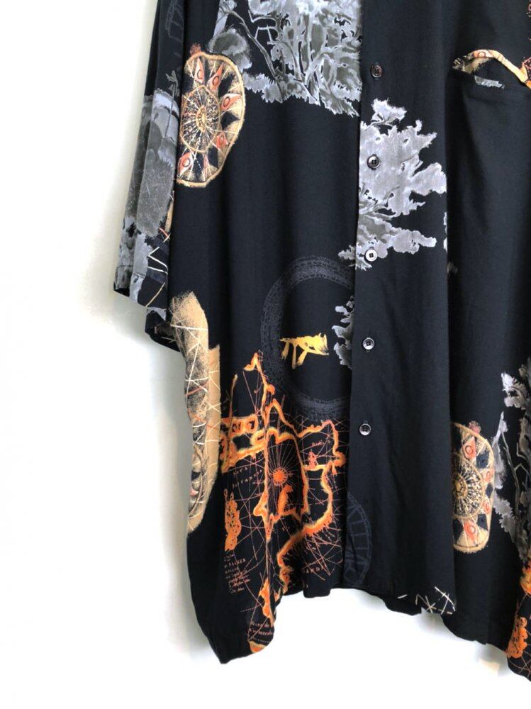 80s short sleeve rayon shirt Black color with a nice art pattern A thin rayon fabric with a soft and smooth feeling of falling 1 A relaxed silhouette with a comfortable size