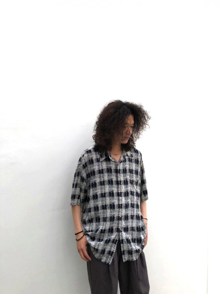 80s short-sleeved rayon shirt Black x white check pattern with a unique atmosphere Rayon fabric with a soft and smooth feeling of falling One piece of relaxed silhouette with a moderately generous size
