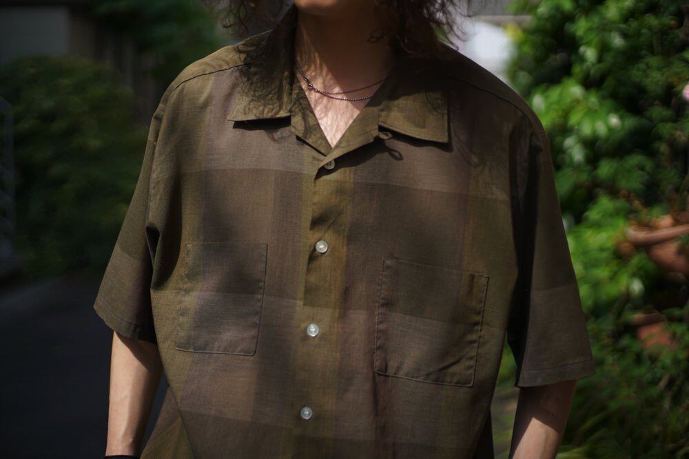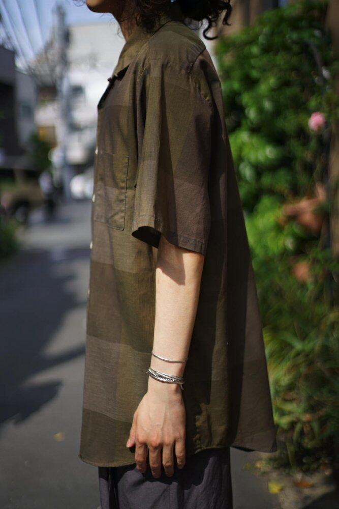 The chambray-like fabric woven with gold threads has a depth unique to vintage, and the dull olive color feels a rudy sensuality.