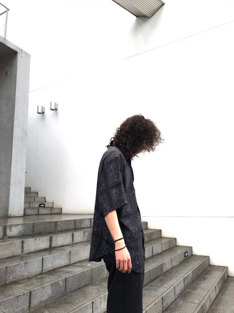 80s short-sleeved shirt Black color geometric art pattern is cool 1st place Rayon x polyester 1 piece that is smooth and soft to the touch A loose size and a modern silhouette