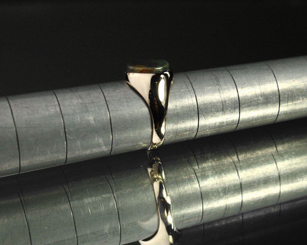 Signet ring made in England. It is the only ring that is allowed to be worn among British gentlemen who wear good things that can be used for a long time with as little waste as possible. The so-called blood stone top that when Jesus Christ was crucified, fresh blood turned from a wound to a green earth or a stone. It is said to bring spiritual energy from its holiness and has a healing effect. Dark green with well-red spots and a deep color. A very simple design with a gold body that draws a soft curve and a top only. It is a designless solid ring that is hard to find when you look for it. 375-9ct gold engraved, hallmark of London office. Please check the condition in the photo and purchase after acknowledging the characteristics of vinteg.