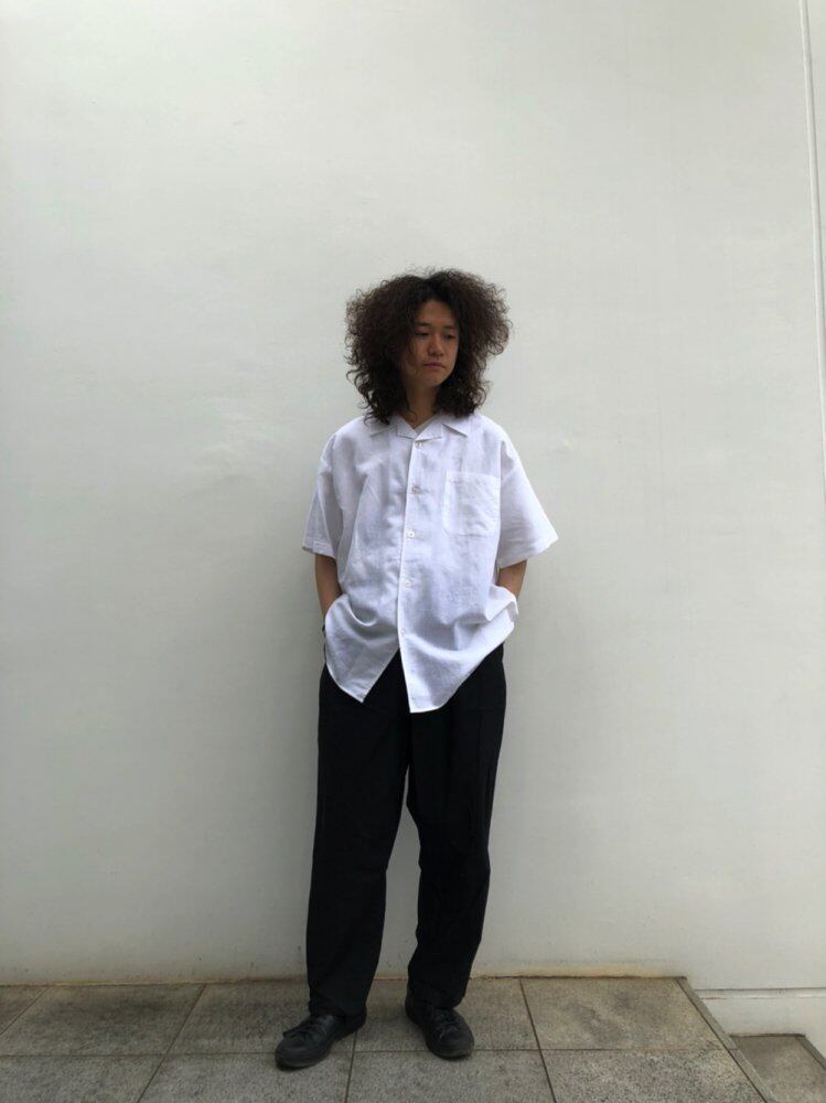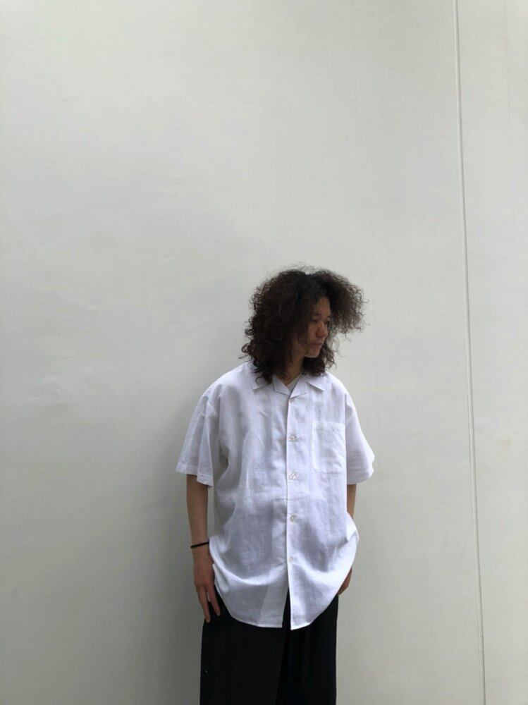 80s short-sleeved linen shirt A simple open-color white linen shirt with a relaxed and voluminous over-silhouette that is perfect for summer with the smooth feel of linen.