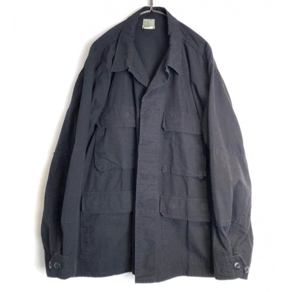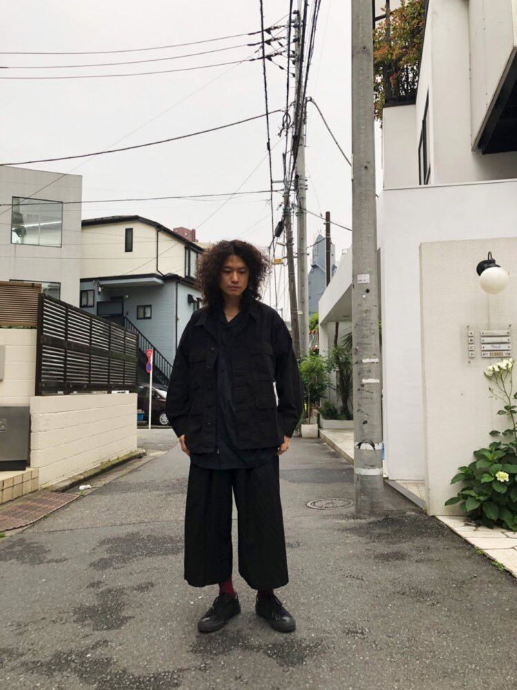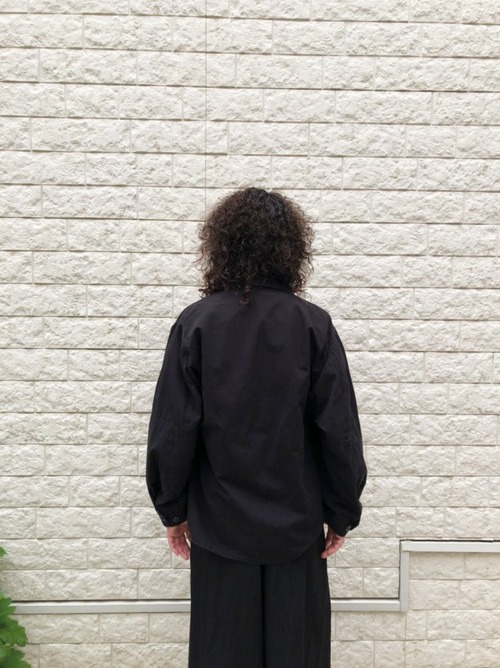 Fatigue jacket made in 2001 A light cotton jacket that is just right for the chilly rainy season. An all-black military item that is easy to use for a moderately loose silhouette outfit.