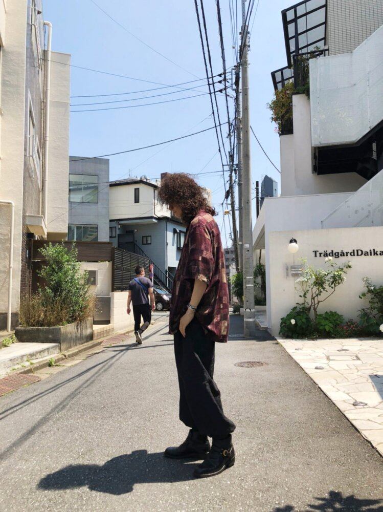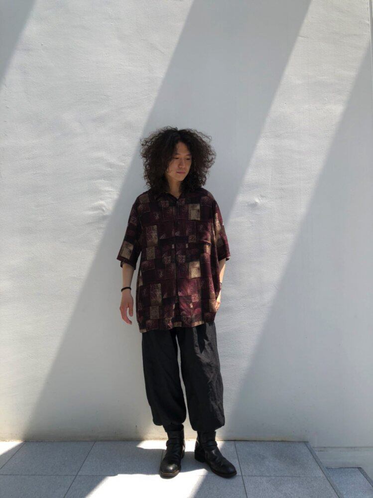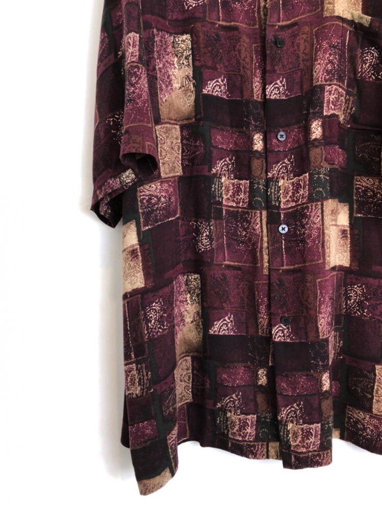 90s short-sleeved rayon shirt Bordeaux x beige art pattern with deep shades A soft and soft rayon fabric that is perfect for summer is a good silhouette with plenty of room and a good balance