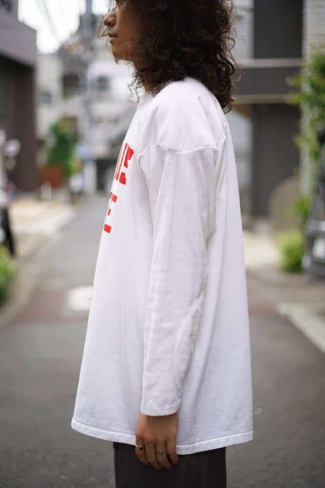 A vertically long silhouette like a football shirt, a loose size that is rare in vintage, with an elbow patch.
