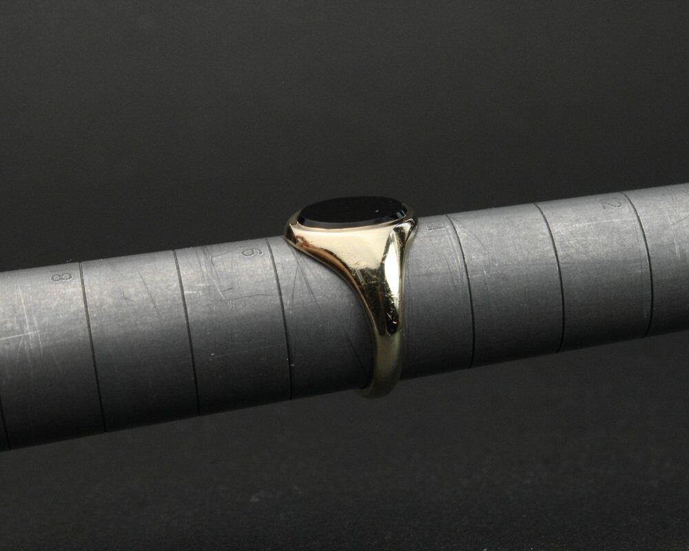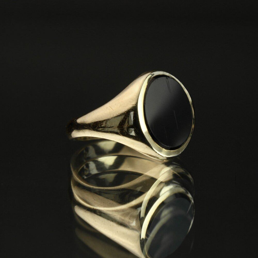 Signet ring made in England. It is the only ring that is allowed to be worn among British gentlemen who wear good things that can be used for a long time with as little waste as possible. A very simple design with a gold body that draws a soft curve and an onyx stop. It is a designless solid ring that is hard to find when you look for it. Engraved 375-9ct gold, Hallmark of the 1963 London office. It doesnt matter when you wear it, but if you expose it to strong light, there will be a slight scratch in the center of the onyx. Please check the condition in the photo and purchase after acknowledging the characteristics of vinteg.