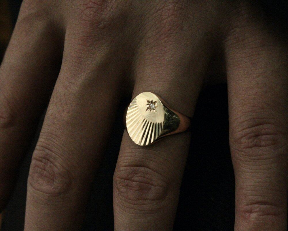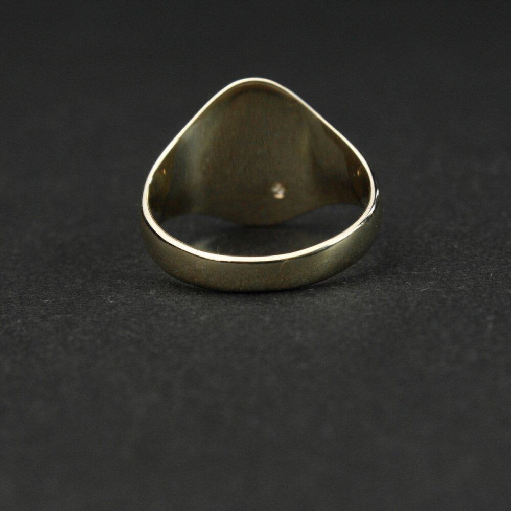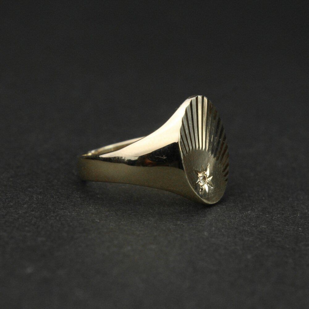 Signet ring made in England. It is the only ring that is allowed to be worn among British gentlemen who wear good things that can be used for a long time with as little waste as possible. A popular type and valuable individual among the signet rings designed for sunlight. It is said that he liked the mod and wore it. A simple round top with fine diagonal engraving and a delicate design with diamonds subtly elegant. Diamonds have been appraised at specialty stores, 375-9ct gold, Hallmark in the London office. Please check the condition in the photo and purchase after acknowledging the characteristics of vinteg.