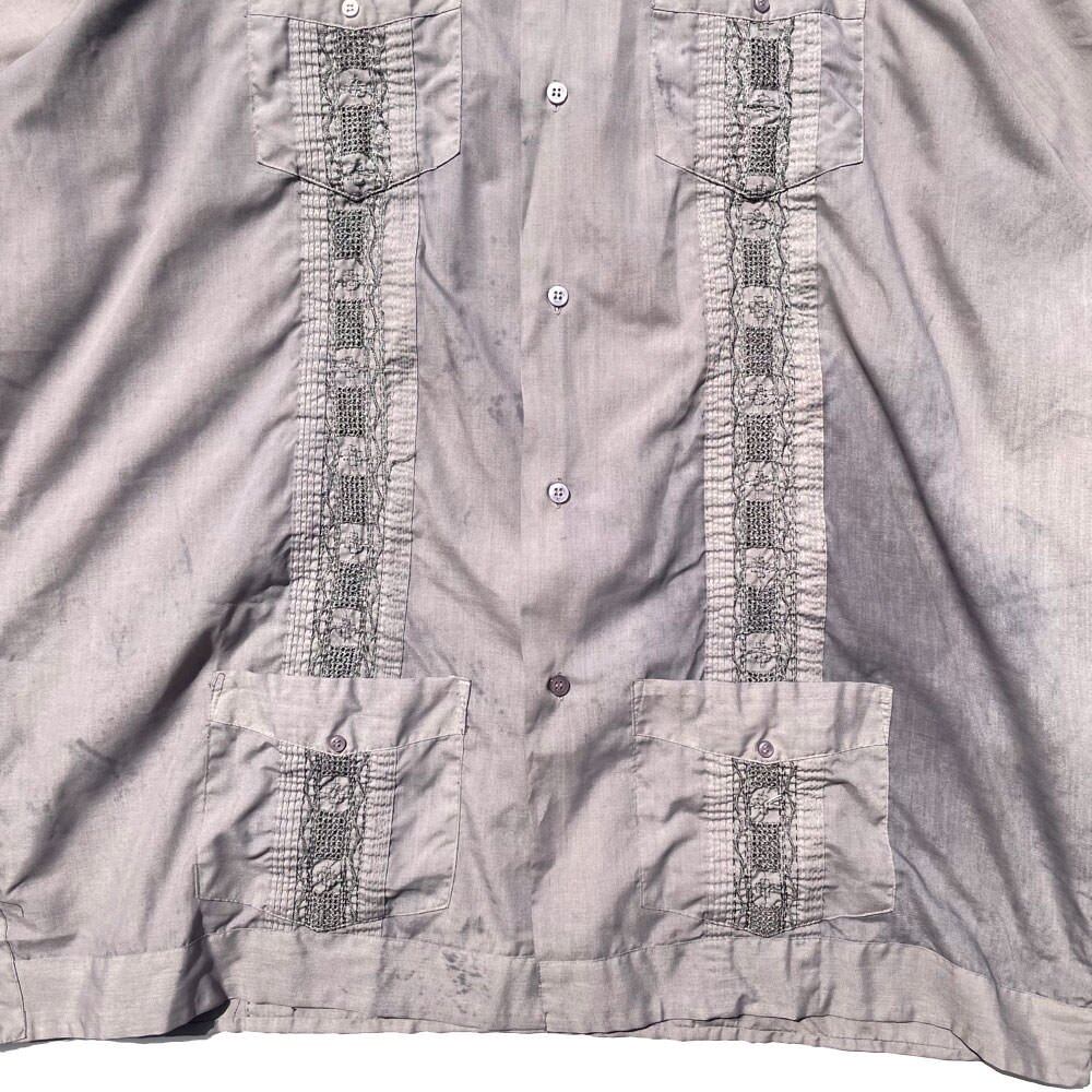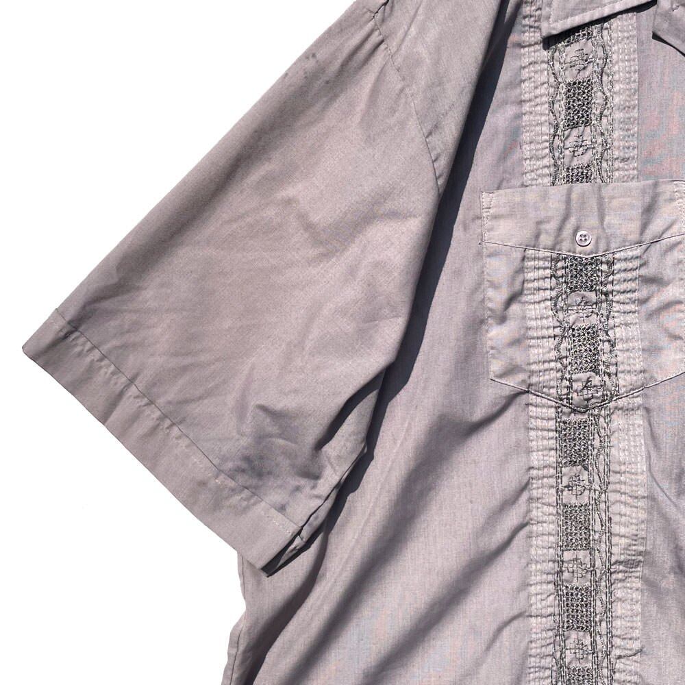 Used as a formal shirt in Cuba, it has an open collar, a box silhouette, and embroidery that gives a dressy impression, contrary to the mannish work style with many pockets, creating a unique impression.