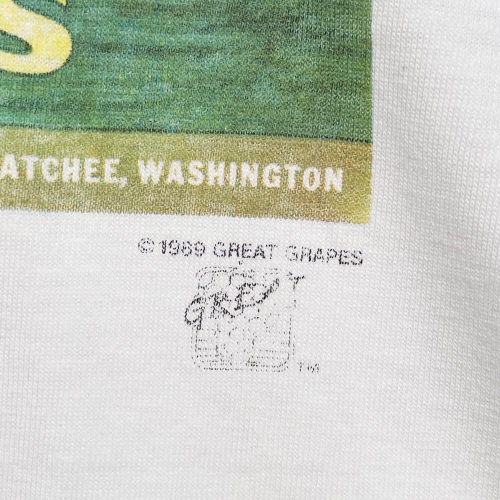 1989 GREAT GRAPES Copyrighted, USA made ONEITA body, sleeves and hem with single stitch.
