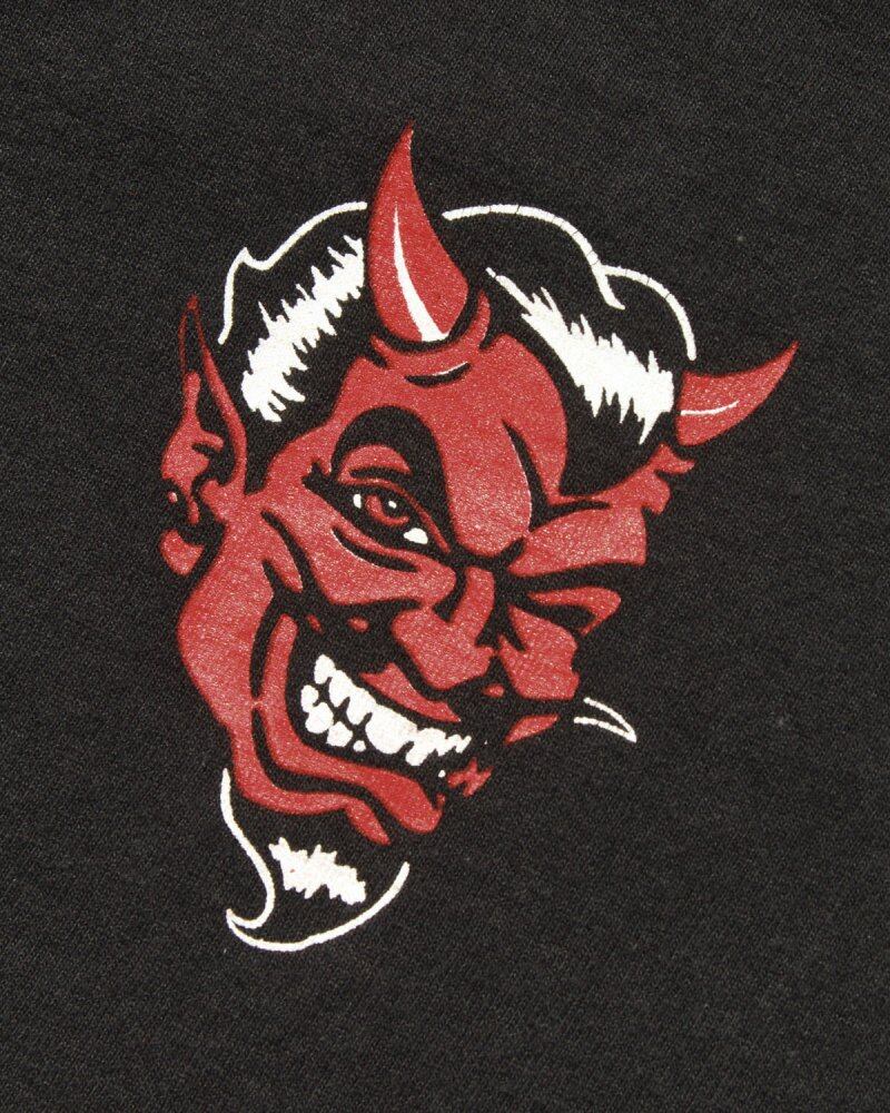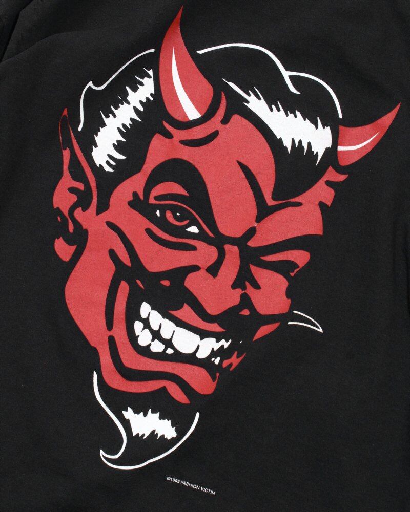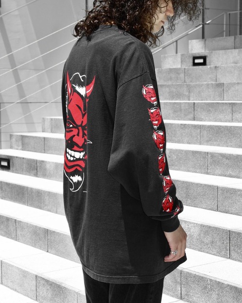 FASHION VICTIM, a print maker famous for anime T-shirts such as AKIRA and Ghost in the Shell, from the 1980s to the 90s are sold at very high prices such as the above T-shirts. It is a brand with good print riding and stylish design. This is a high-impact design printed with the devil that is popular in hot rods and rockabilly culture. It is a rare long-sleeved type with prints on the sleeves, giving you a taste of the street atmosphere of the 90s. DELTAs USA body color is black, a valuable XL size. Although it is not noticeable, it is in good condition subjectively as old clothes with oil stains on the front body. Since it is an old product, it rarely deteriorates over time. Please check the photo and understand the characteristics of Vintage before purchasing.