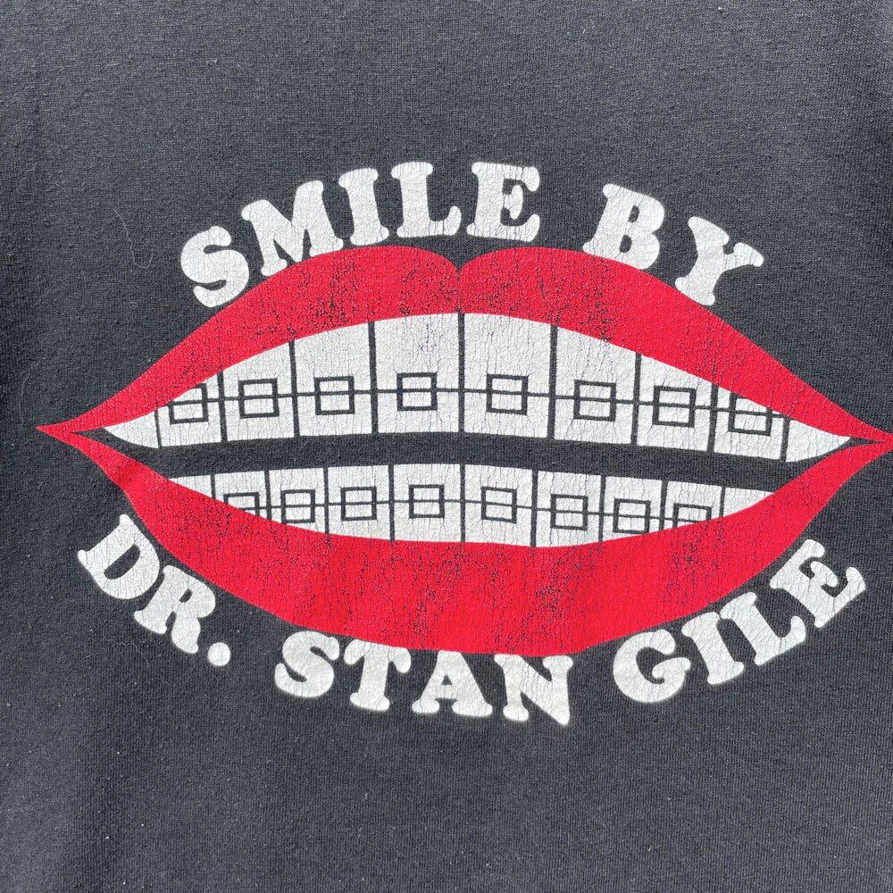 Perhaps the pop artwork for orthodontic promotion is impressive, and the print that has faded over time is a vintage texture.