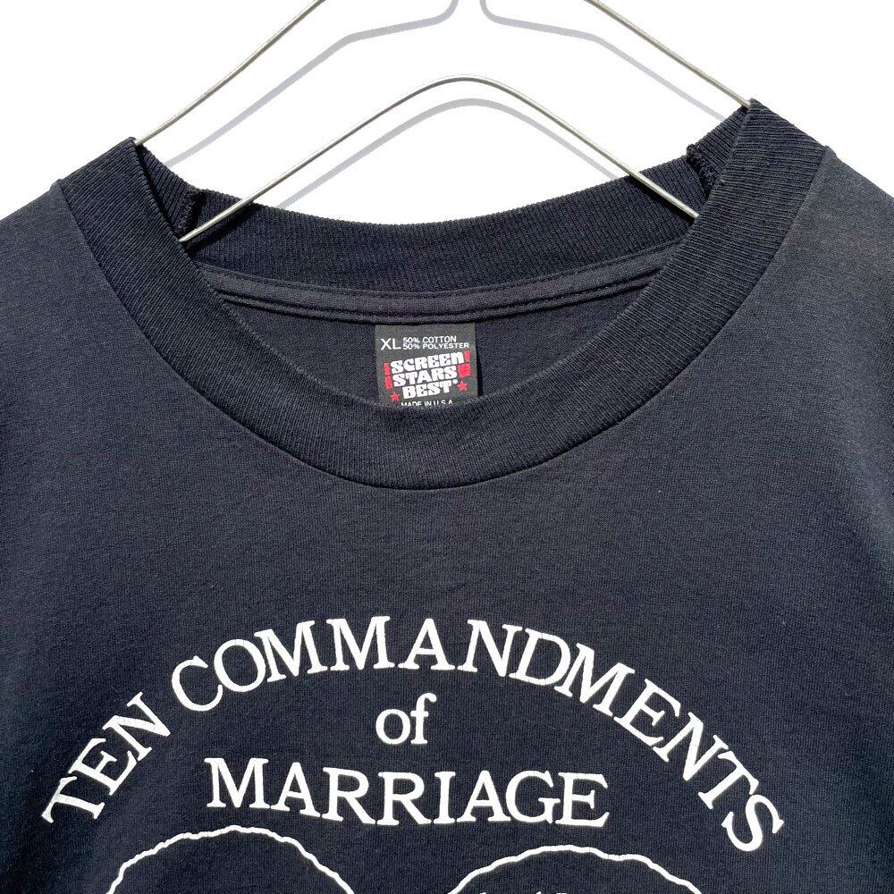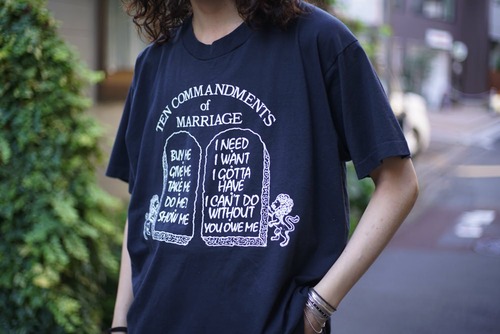 A cool piece of pop artwork on a stone monument engraved with the Ten Commandments of Marriage.