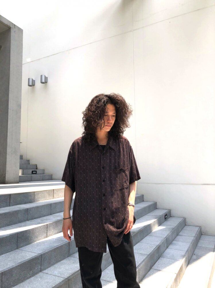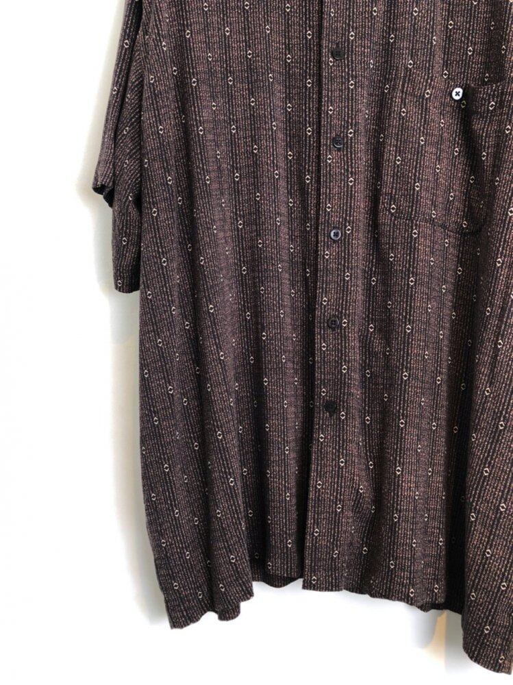 90s short-sleeved rayon shirt A loose-fitting rayon shirt with a soft and soft feel. Azuki brown x black striped pattern is also astringent.