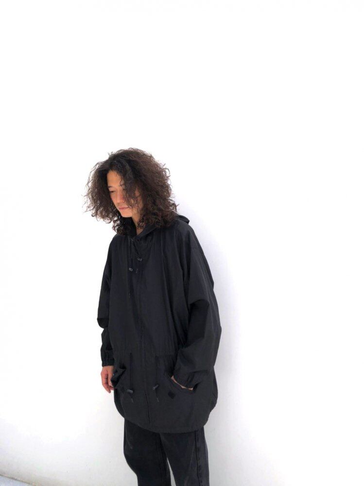 80s Nylon Anorak A big silhouette made of a thin and light nylon piece. An all-black color that is convenient to put on when its chilly or when its raining suddenly.