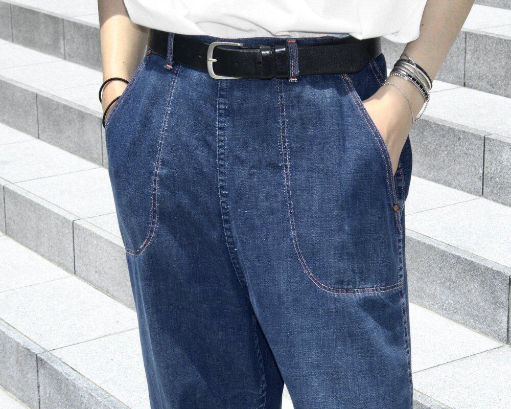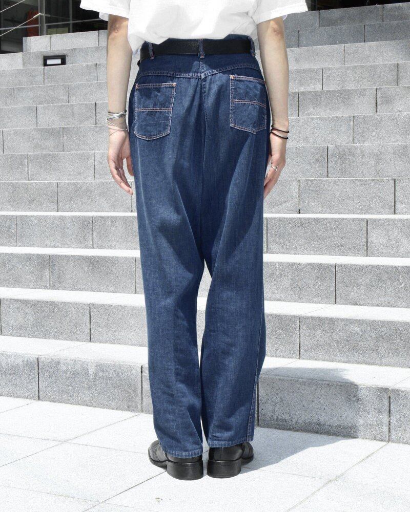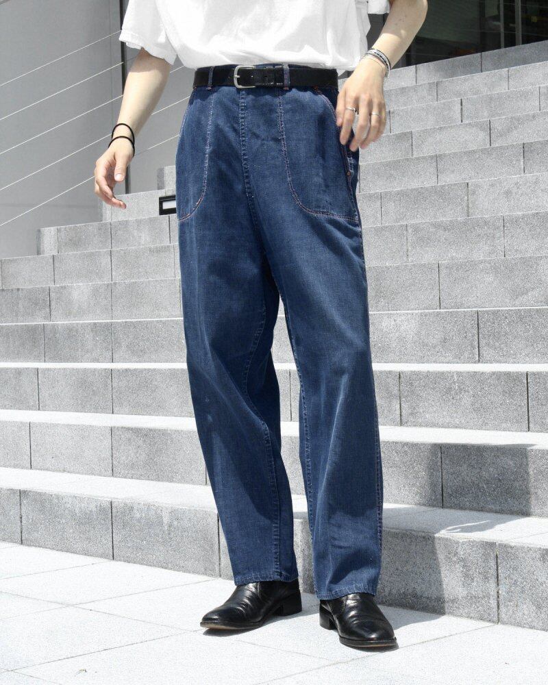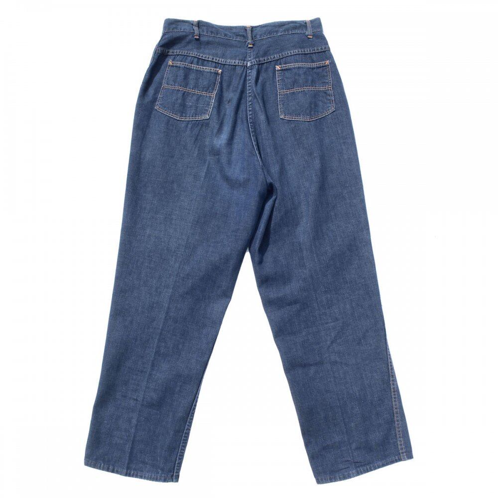 Strong reliable denim pants developed as a private brand of Sears. This is a lunch pants type from the 1950s with light ounce denim. It is an elegant piece with the texture of denim unique to vintage, individuals with good color retention, and a beautiful silhouette with a tapered effect. One size adjustment is possible with the button, and the insect (metal fittings) on the top of the zip is missing, but there is no problem with wearing it because it stops with the one-claw zipper. The zipper works. Overall, it is in good condition as a second-hand clothing. Since it is old, it rarely deteriorates over time. Please note that after checking the photo.