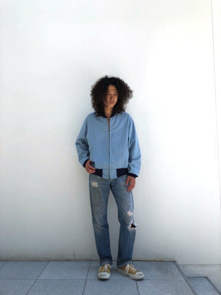 1960s denim jacket Sporty zip-up denim type 1 piece Tailored with a cool ice blue color and navy rib light ounce denim, it is a light haori that will be useful in a wide range of seasons.