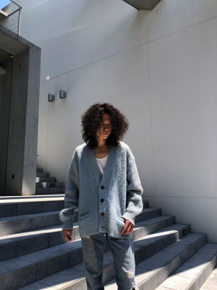 Mohair cardigan of the 1960s Grayish ice blue color with a nice atmosphere Soft hair length unique to mohair XL size that is very rare for mohair of this age It is not a seasonal product, but if you are looking for it, it is early Please