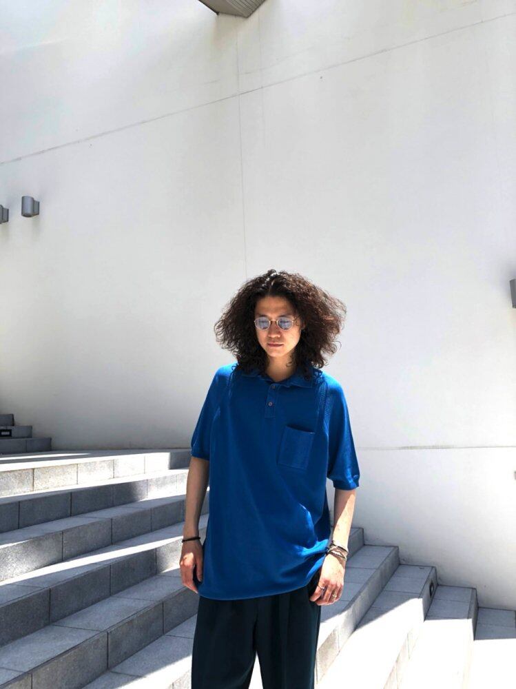 70s knit polo shirt A fresh blue color with good coloring is eye-catching in the summer. A highly elastic knit polo shirt that is soft and comfortable to wear.