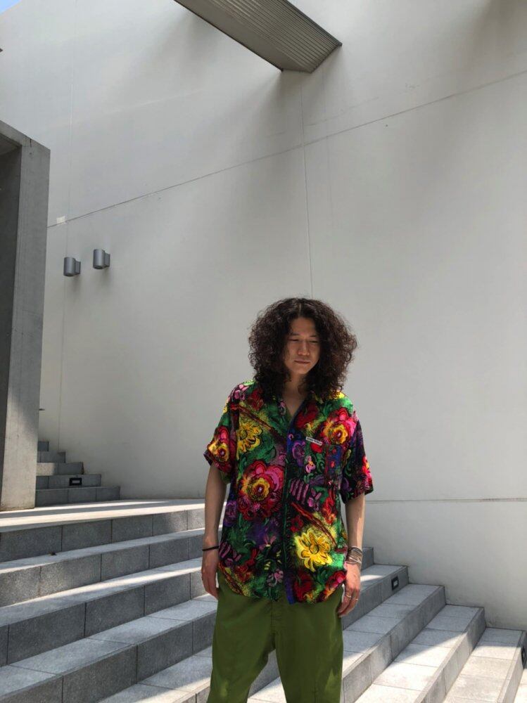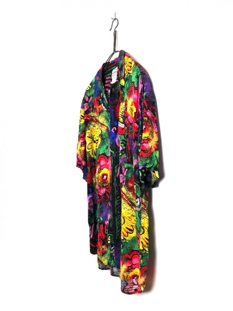 80s short-sleeved rayon shirt A piece of rayon-specific smooth and soft fabric with a colorful tropical flower based on black color. A good silhouette with a moderate amount of space.