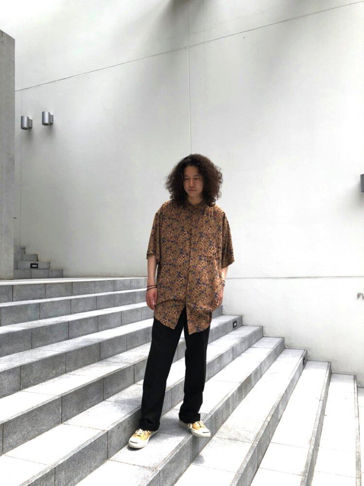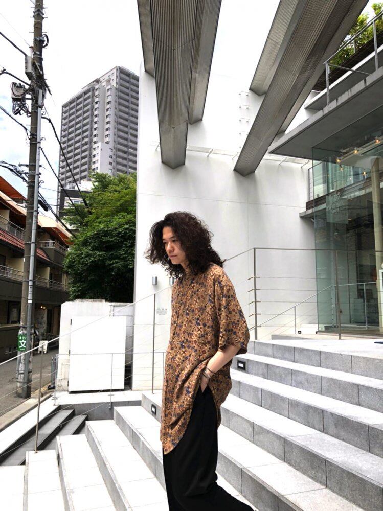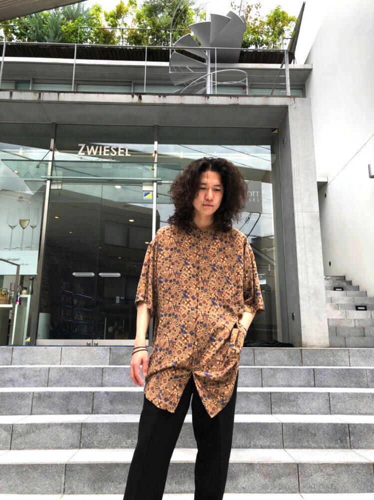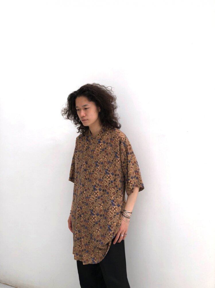 80s short sleeve rayon shirt loose & slightly long over silhouette