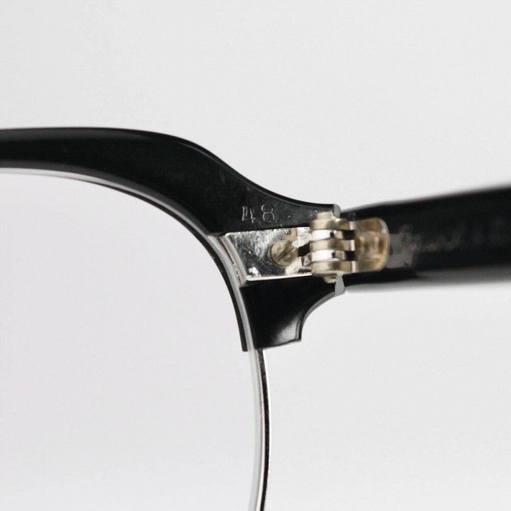 Vintage [Bausch + Lomb] glasses around the 1950s. Named as one of the three major eyeglass manufacturers in the United States, it is a brand with a history of more than 150 years, but at the end of B & L Ray-Ban, no eyeglasses are made in modern times, and its vintage frame is a rare one. Side temple attachment position A dented salmont blow type silhouette that goes well with Japanese features. The combination of ebony black and metal gives the appearance of intelligence. We have newly added a clear UV lens. (Since it is an over-the-counter product, there are slight scratches, etc.) Appraisal and maintenance at the eyeglass store, the temple (or rope) can be adjusted in size. (At your local optician) We have scrutinized the condition, but since it is a vintage item, there are threads and scratches. Please purchase after understanding the characteristics of vintage and antique. All of our eyeglasses are maintained and lens replaced at the optician g room in Ebisu, Tokyo.