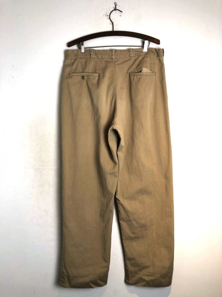 Vintage Chino Trousers of the 1960s Loose wide tapered silhouette A beige color with a nice atmosphere and a soft and aged Chino fabric.