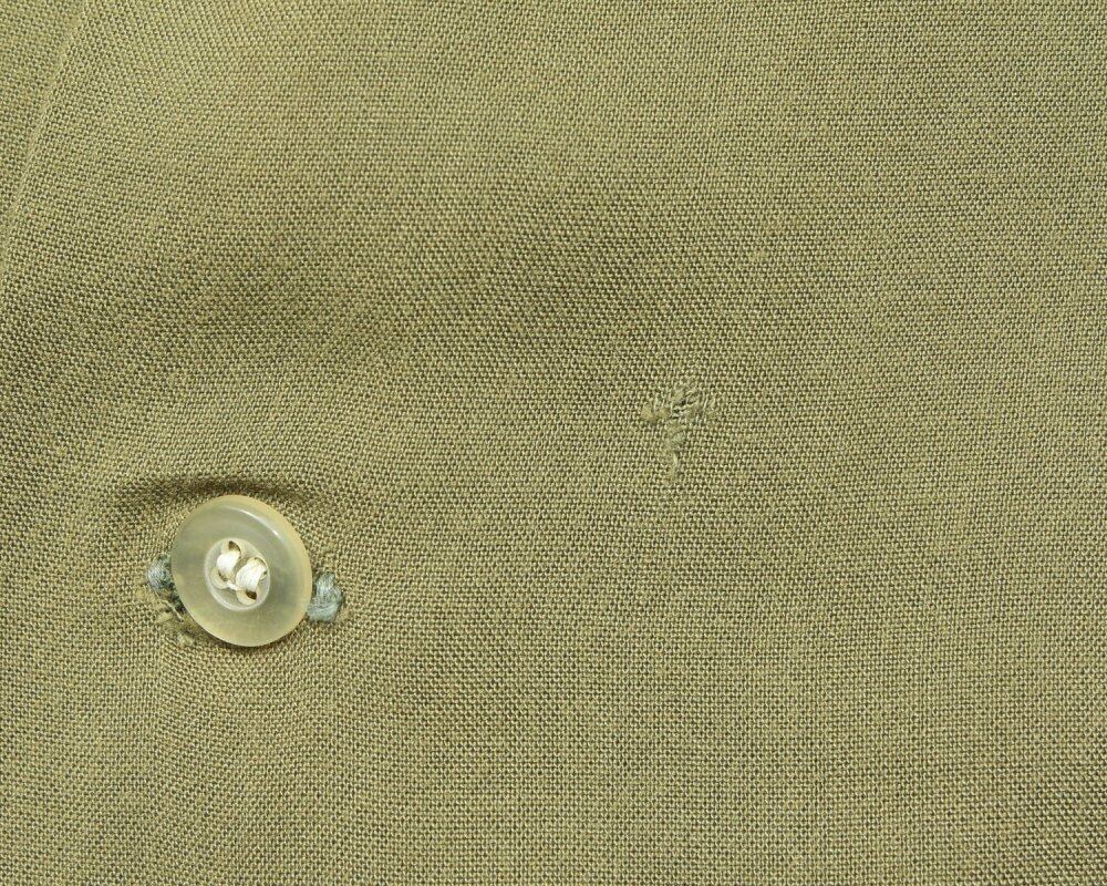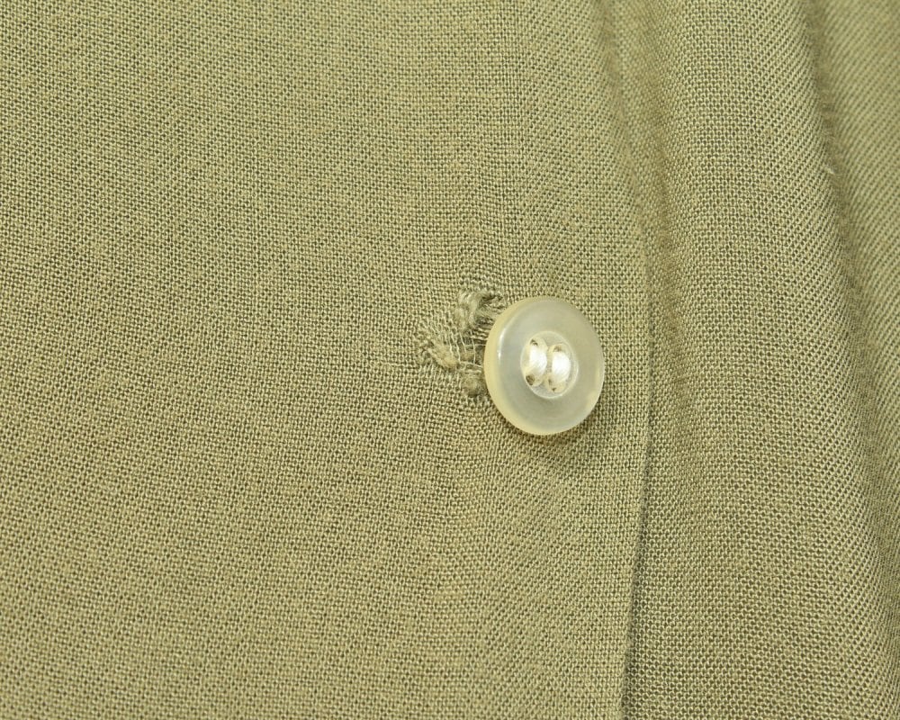 Around the 1960s, it is an open color rayon shirt. The yellowish olive-colored body, which is rare among vintages of this age, has a bitter look. The design of the chest, which is finely hand-embroidered with silk thread, is also a point. It is made of rayon, which has been precious in recent years, and features a soft and thick drape. Valuable L size and relaxed silhouette. The buttonhole and button attachment position are damaged in one place, and it is in good condition subjectively as used clothing. Since it is an old product, it rarely deteriorates over time. Please check the photo and purchase after acknowledging the characteristics of vintage.