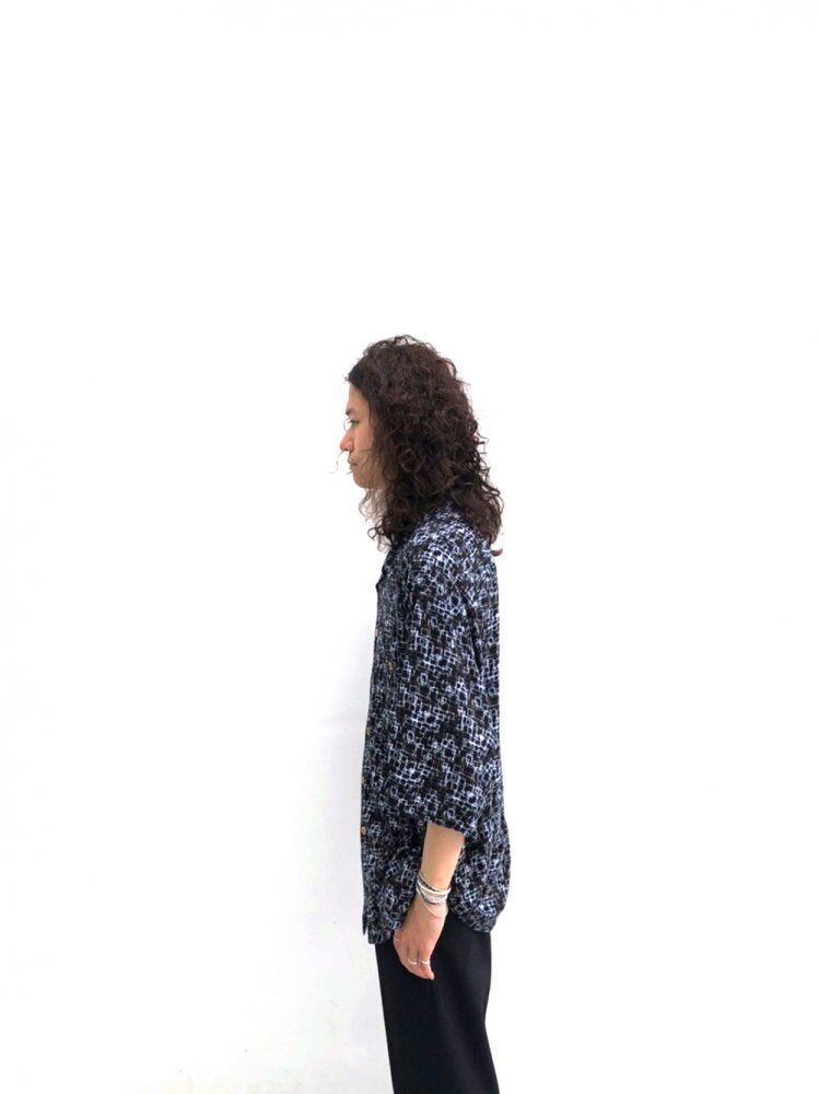 A relaxed over-silhouette rayon shirt with a voluminous width and plenty of fabric that falls smoothly and softly with 100% rayon.