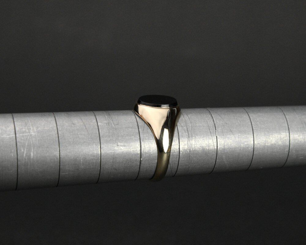 Signet ring made in England. It is the only ring that is allowed to be worn among British gentlemen who wear good things that can be used for a long time with as little waste as possible. A very simple design with a gold body that draws a soft curve and an onyx stop. It is a designless solid ring that is hard to find when you look for it. Engraved with 375-9ct gold, Hallmark of the 1972 London office. It doesnt matter when you wear it, but you can see slight scratches on the onyx depending on the amount of light. Please check the condition in the photo and purchase after acknowledging the characteristics of vinteg.