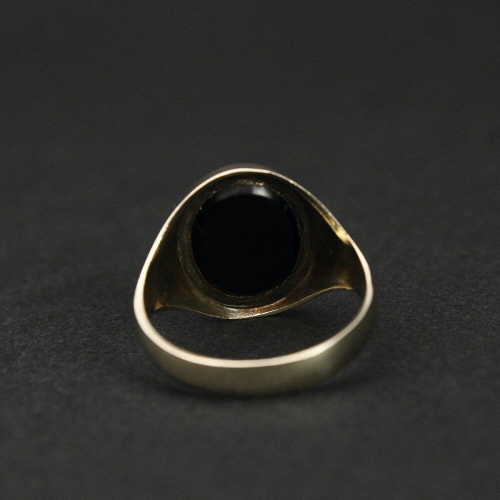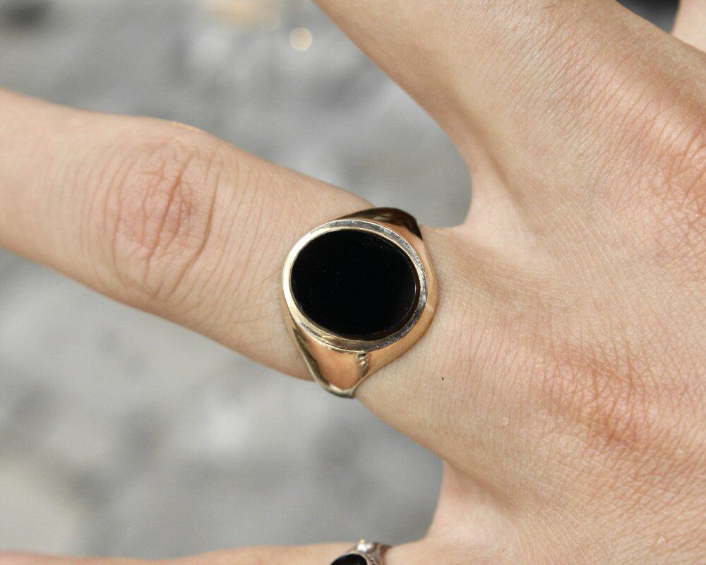 Signet ring made in England. It is the only ring that is allowed to be worn among British gentlemen who wear good things that can be used for a long time with as little waste as possible. A very simple design with a gold body that draws a soft curve and an onyx stop. It is a designless solid ring that is hard to find when you look for it. 375-9ct gold engraved, 1979 London office hallmark. An individual in good condition. Please check the condition in the photo and purchase after acknowledging the characteristics of vinteg.