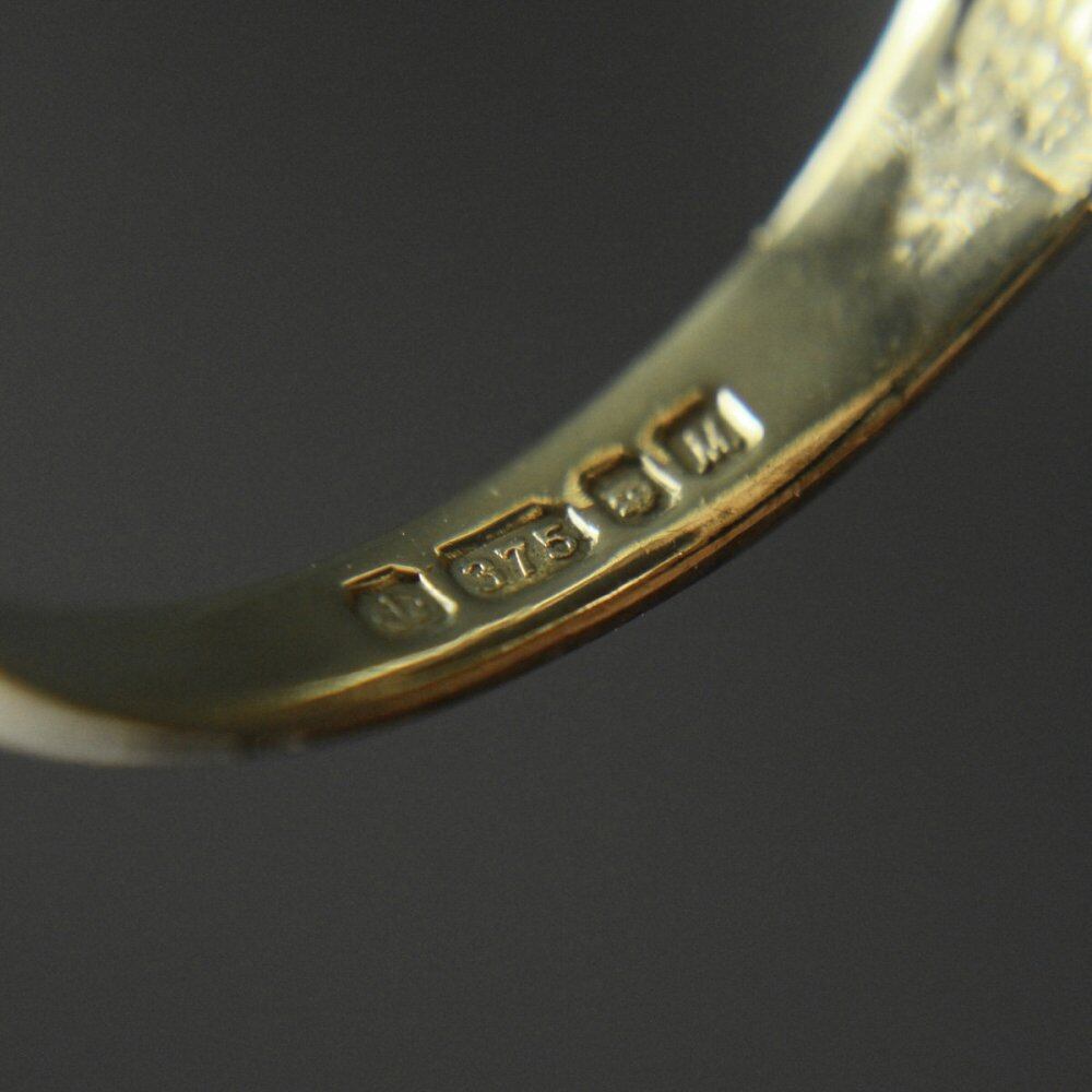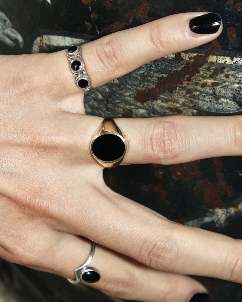 Signet ring made in England. It is the only ring that is allowed to be worn among British gentlemen who wear good things that can be used for a long time with as little waste as possible. A very simple design with a gold body that draws a soft curve and an onyx stop. It is a designless solid ring that is hard to find when you look for it. 375-9ct gold engraved, 1986 London office hallmark. An individual in good condition. Please check the condition in the photo and purchase after acknowledging the characteristics of vinteg.