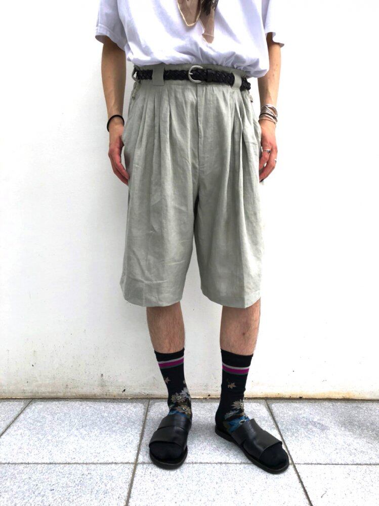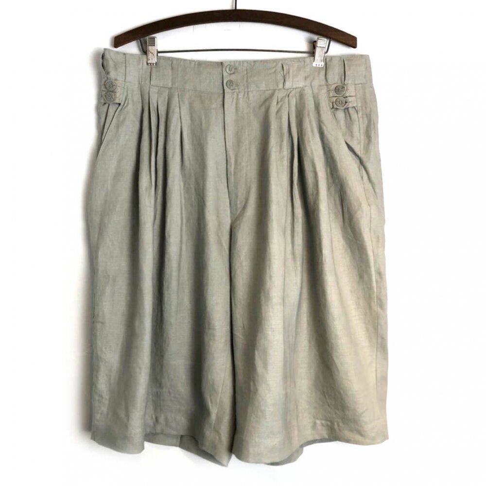 90s Gooch linen shorts The soft and smooth linen fabric is the best material for summer in Japan with high humidity. Adult-like pale grayish khaki color 5 tuck with a wide silhouette full of volume.