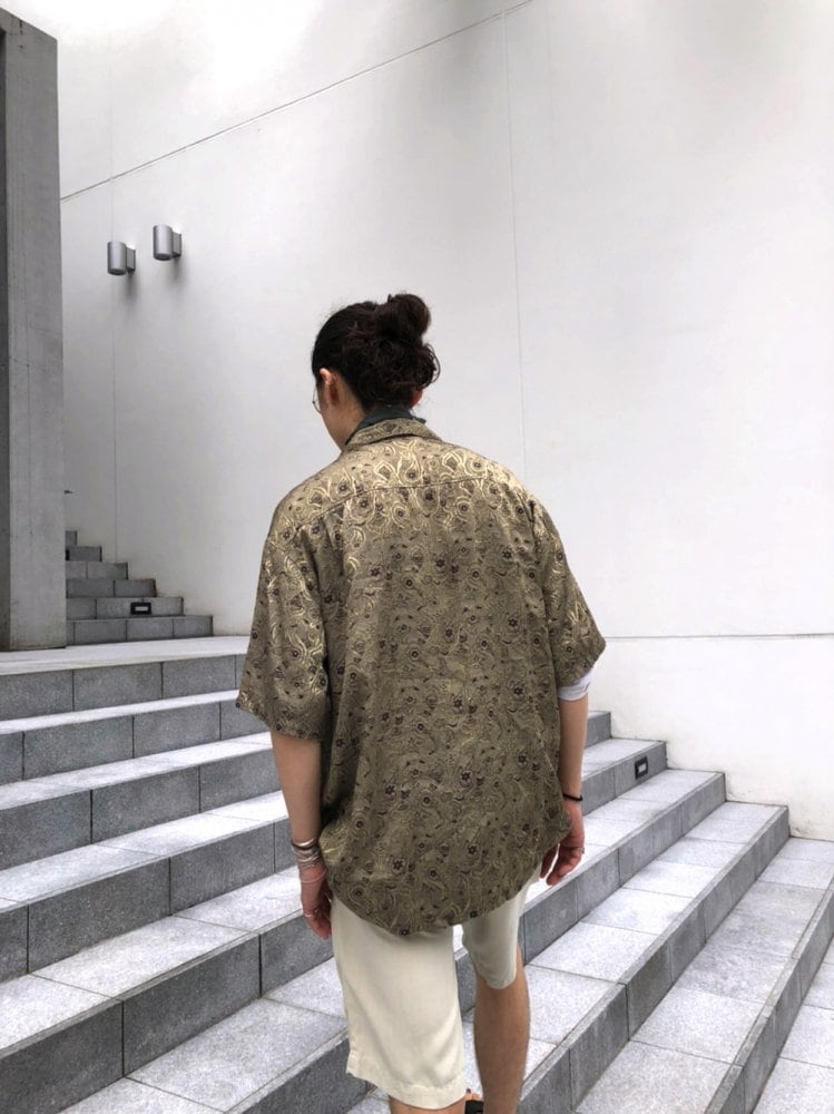 Atmospheric ash gold color batik pattern Rayon jacquard fabric with a three-dimensional pattern that gives it a luxurious appearance.
