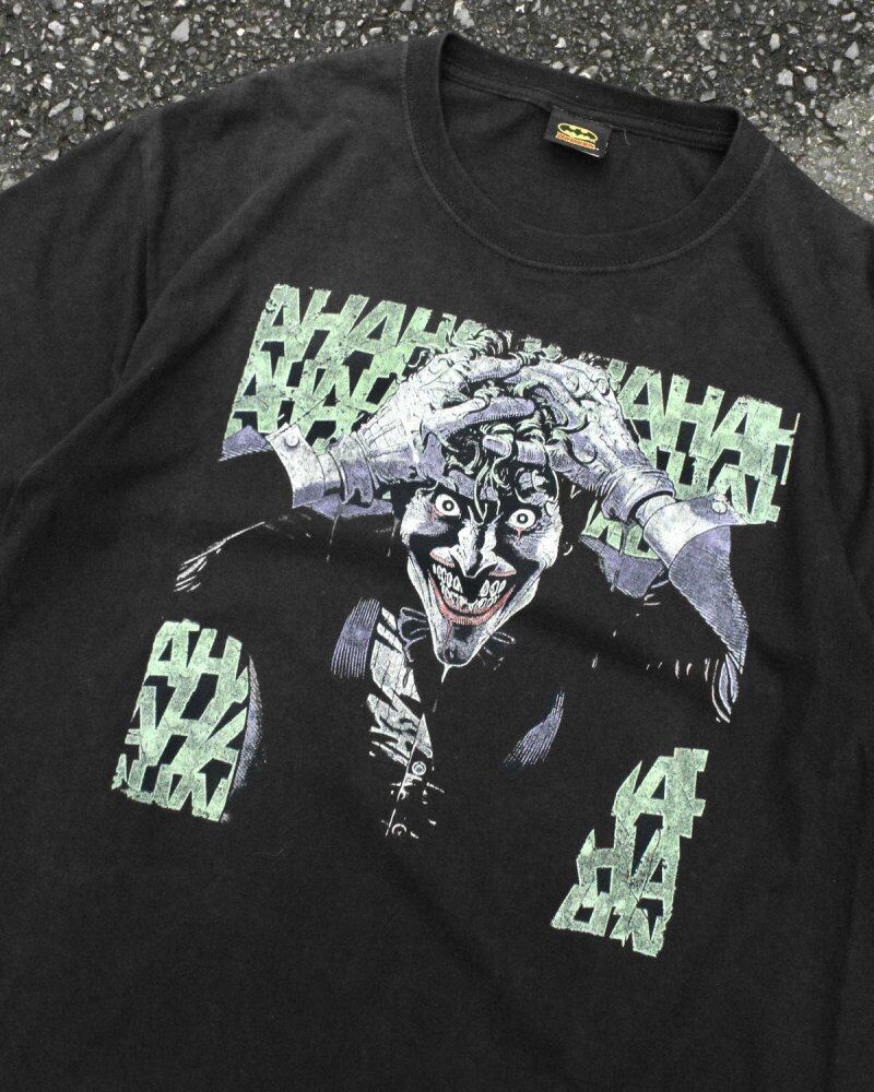 Comic print T-shirt from the 1989 movie Batman and Joker. This is a type that was resold from the latter half of the 90s, but it is a rare piece with a 100% cotton body, a good size feeling that was not available at that time, and a design that is rare in the market. L size with a moderately loose silhouette. It is in good condition subjectively as used clothing. Since it is an old product, it rarely deteriorates over time. Please check the photo and understand the characteristics of Vintage before purchasing.